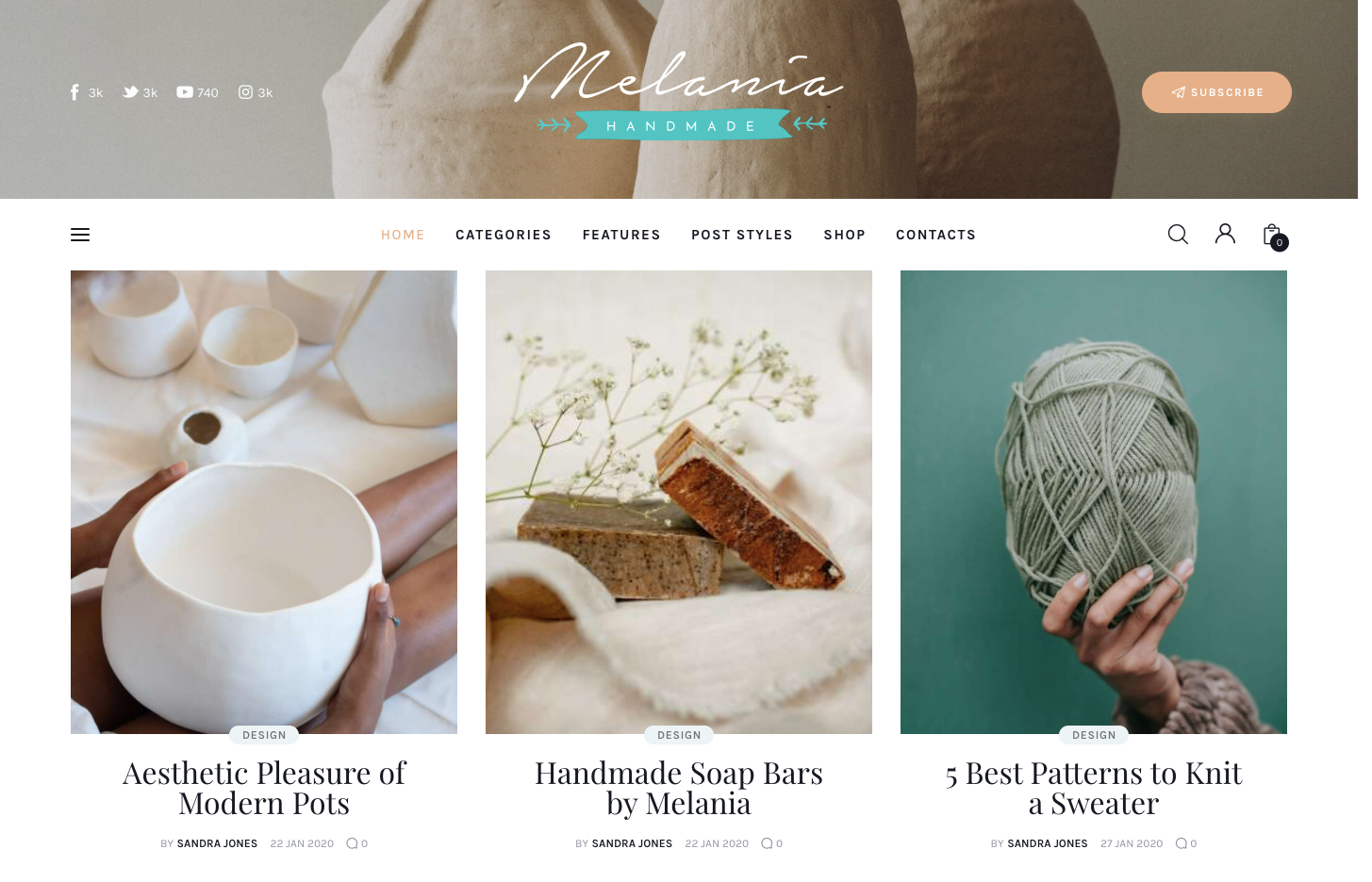Melania | Handmade Blog & Crafts Shop Artistic WordPress Theme