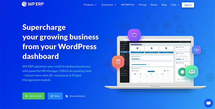WP ERP combines accounting software, CRM, and management software. This plugin is also free and is suitable for small to medium-sized businesses. The basic free features include logs, contact records, and scheduling. Thus, you can segment contacts, create plans, and book meetings for free.