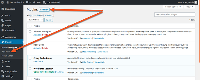 - Once you click the Plugins, you will find the «Add New» button just aligned to the Plugins.