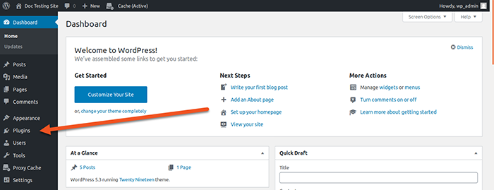 • Get started with your WordPress Admin Interface and find click on « Plugins » in the left sidebar.