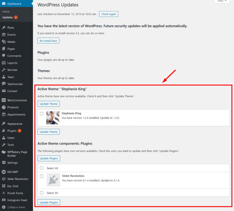 Some of our themes come bundled with ThemeREX Updater plugin for automatic update of the included components. The plugin allows to update bundled plugins directly in the Dashboard whenever a new plugin version is released.