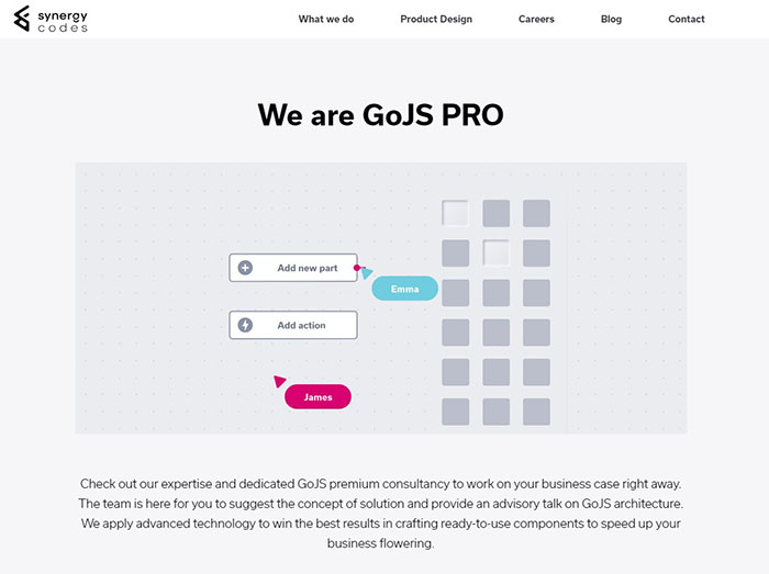 Take a look below to better understand how custom data visualization could look like. The tool that’s been employed relies on the GoJS library for data visualization, which makes it capable of fitting nearly any niche.