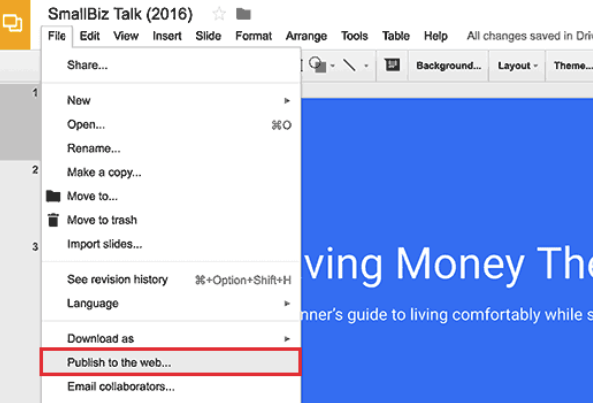 - Click on the “Publish to the Web” button from the drop-down menu.