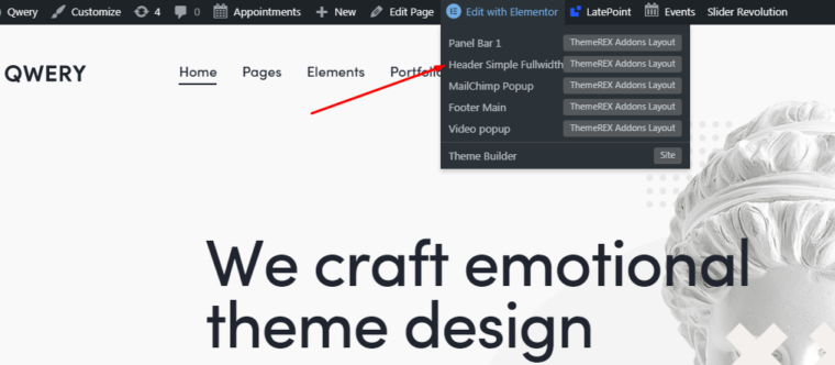 - Open the header Layout by clicking Edit with Elementor on the frontend.