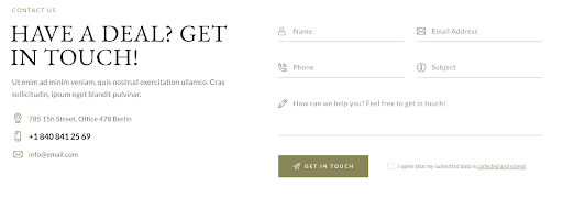 Establishing communication with customers is one of the most important purposes of websites promoting legal services. The Law Office WordPress theme is loaded with several handy features intended to let your audience get in touch with you for an online consultation or book a visit. It includes an online appointment booking system, letting users choose the date and time when they will visit your office. There are also working contact forms, which you can easily customize according to your own needs and the specific requirements of your brand.