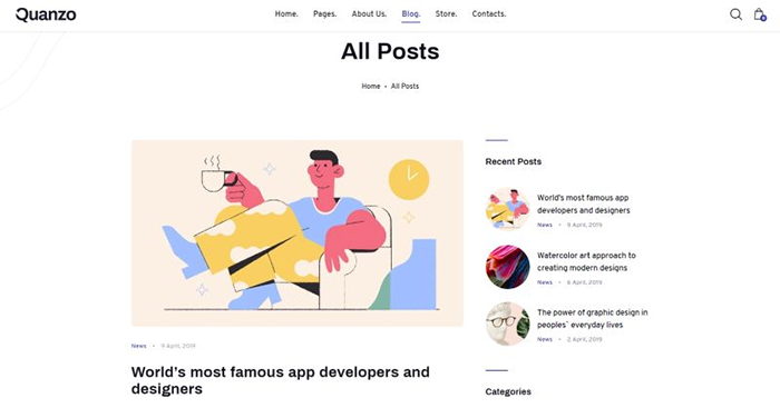 You need to give people a compelling reason to visit your portfolio and talk about it. Quanzo offers you to let your blog be as creative as possible. It comes with several highly customizable blog layouts to choose from. Much more, choose a style of pagination, the position of the sidebar, and forget not to write SEO-friendly content. It’s in your own interest to tweak it in your needs and make it shine. Even better, add some articles where you share tips and advice on topics you take care of. Make any changes you want in WordPress Customizer and preview the result on a fly.