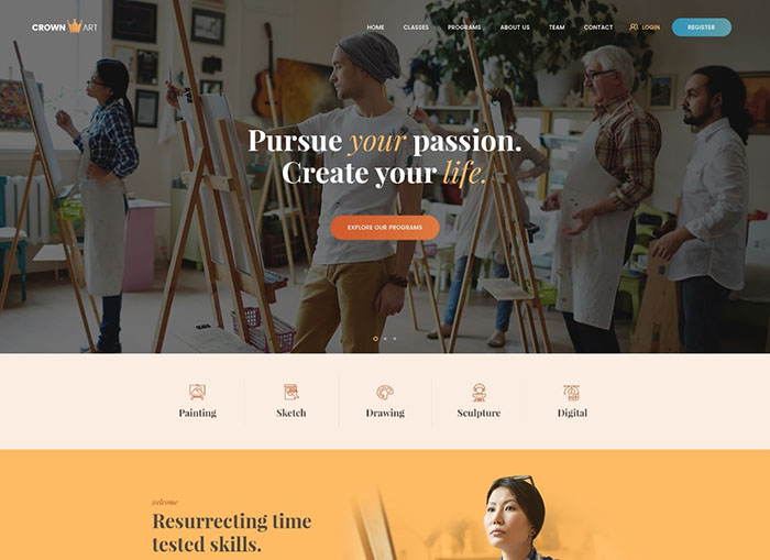 Crown Art | Drawing and Music School WordPress Theme