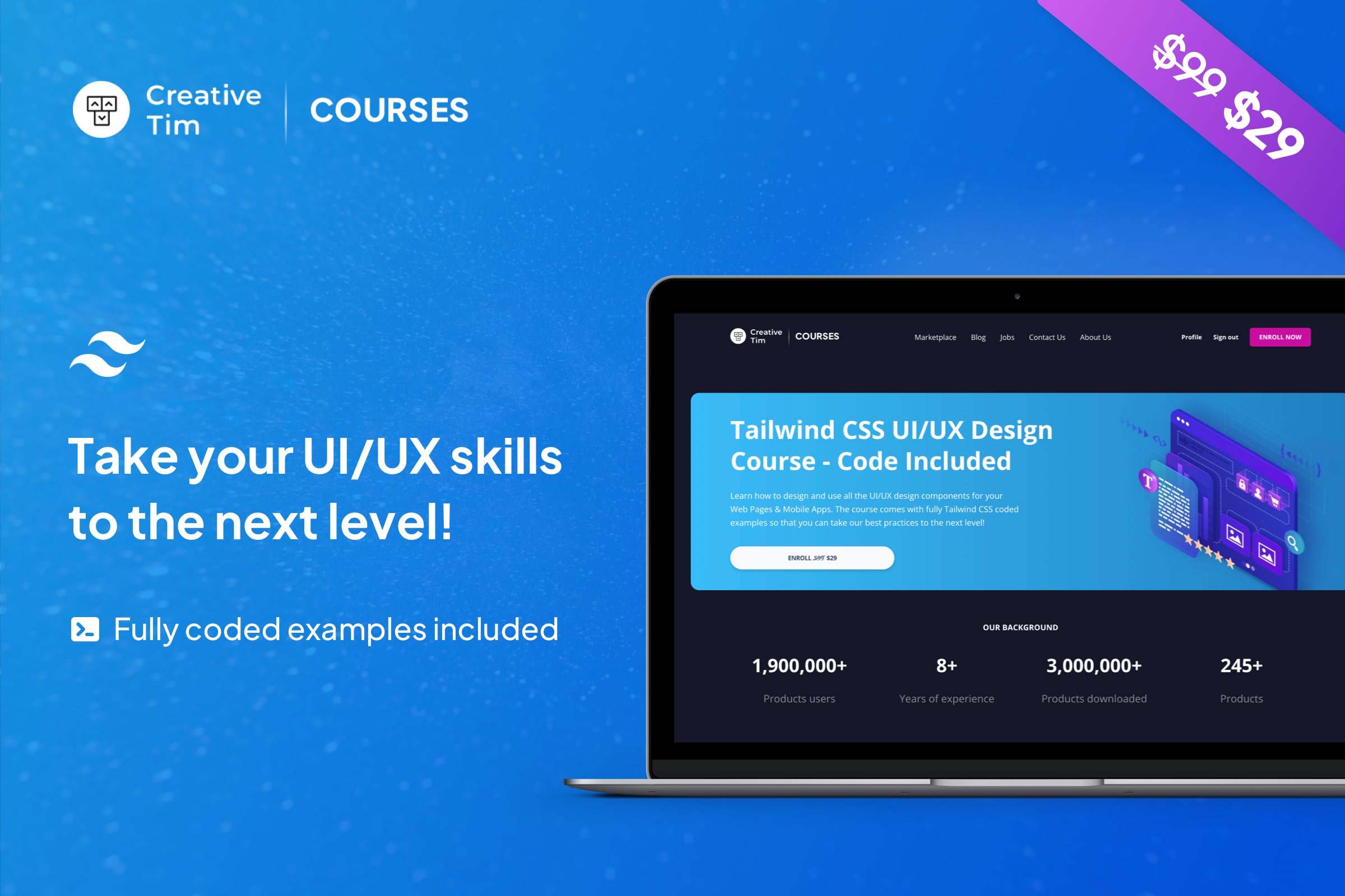 The course was created by the expert team from Creative Tim, a huge name in the UI/UX industry.