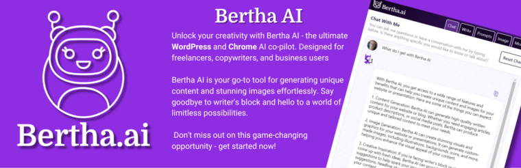 Bertha AI is a creative powerhouse that combines AI-driven content generation with visual design refinement. It generates tailored, high-quality content aligned with your WordPress theme, much like solutions offered through professional Generative AI development services, while also offering tools to refine layouts and ensure content consistency across the site.