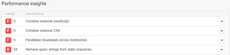 Well, there is nothing to be worried about the performance grade on all cloud providers. Below are the factors that defines the performance grade. You can see, Pingdom is suggesting to combine external resources. You can fix them by using a number of methods and performance grade will be increased.