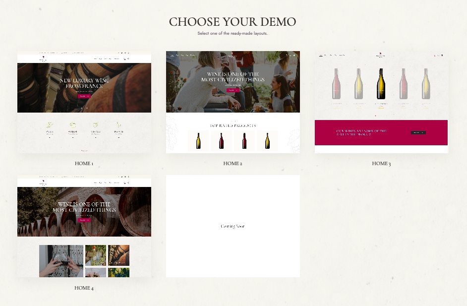 With the help of the WineShop theme ready-made demos, you will be able to launch an e-store, run a blog, and promote your professional skills.