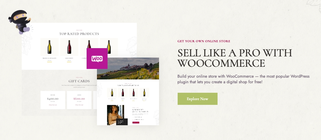 The WineShop theme is bundled with the WooCommerce plugin which includes all the necessary functionality for a powerful e-store launching. There are flexible menu options, stylish product pages, an advanced shopping cart, various payment options, and more. With the WineShop theme, you will create a sleek products catalog that converts visitors into customers just like that.